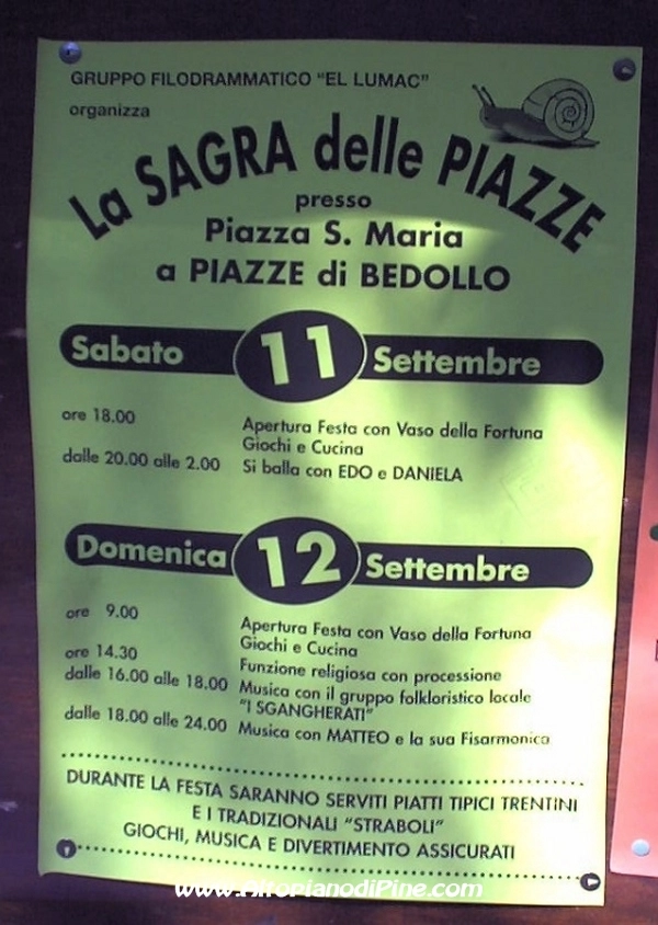- segui la pagina I Love Pinè (eventi dell'Altopiano di Piné)